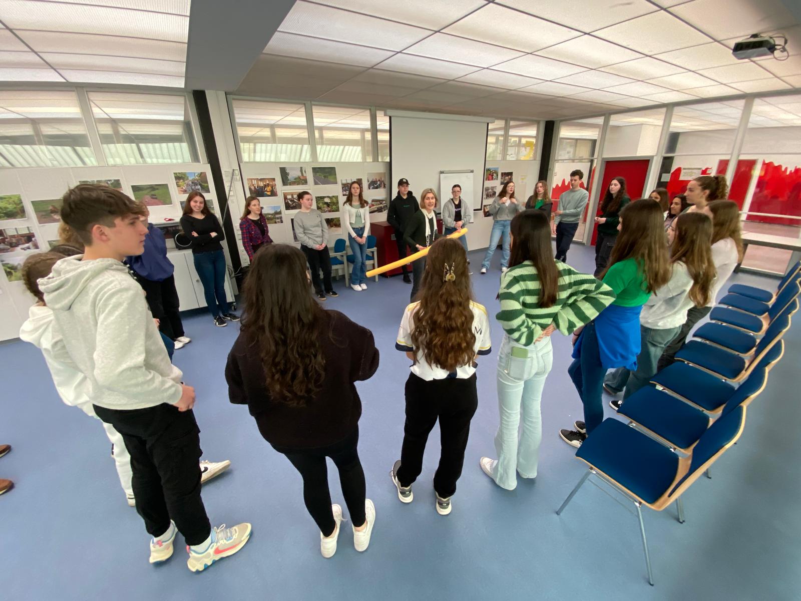 Vom 22. bis 26.04.2024 besuchten Gäste aus Spanien und Slowenien unsere Europaschule im Rahmen des Erasmus-Plus-Projekts „Digital me“. Geleitet und vorbereitet wurde der Besuch von unserer Englisch-/Physik-Kollegin und Erasmus-Beauftragten Isabell Youngkin und unserem pensionierten Kollegen Wolfgang Borschel. Während der gemeinsamen Woche beschäftigten sich alle intensiv mit spannenden Zukunftsthemen. Insgesamt 13 Schülerinnen nahmen aus unserer Schule daran teil: fünf Schülerinnen aus der 9G2, vier Schülerinnen aus der 9G3 sowie vier Schülerinnen aus der 10G2.