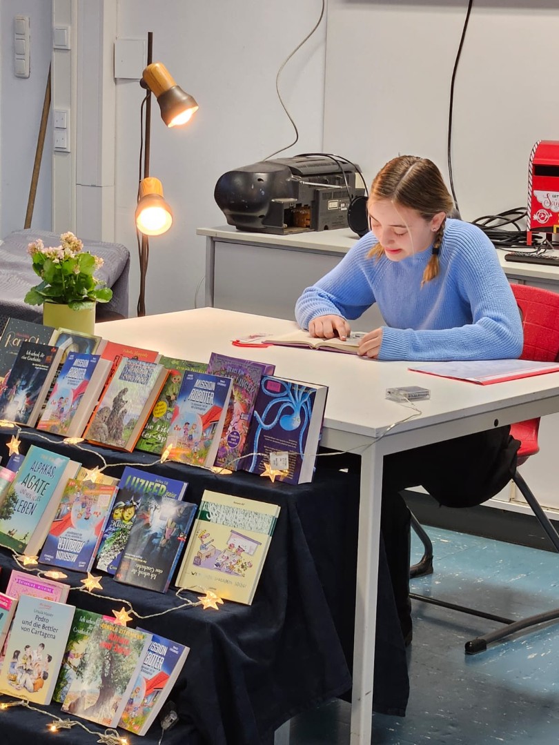 Vorab fanden hierzu im 6. Jahrgang Buchpräsentationen mit Lesungen statt, aus denen die Klassensiegerinnen und Klassensieger hervorgingen. Beim Vorlesetag lasen alle drei aus einem selbst gewählten Buch (L. Carroll: Alice im Wunderland, M. Auer: Die Schule der magischen Tiere, J. Kinney: Gregs Tagebuch) sowie einem unbekannten Fremdtext (J. Till: Luzifer junior – Klassenfahrt ins Geisterschloss) vor.